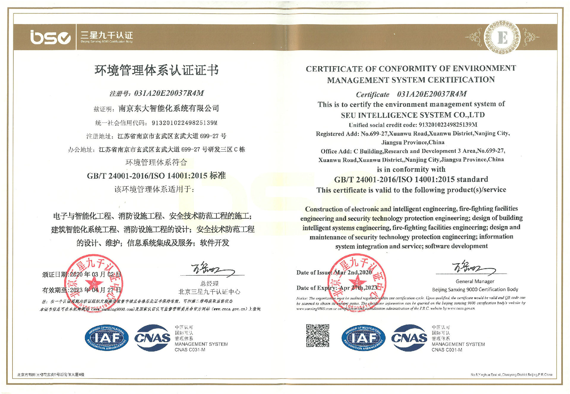 环境管理体系证书
