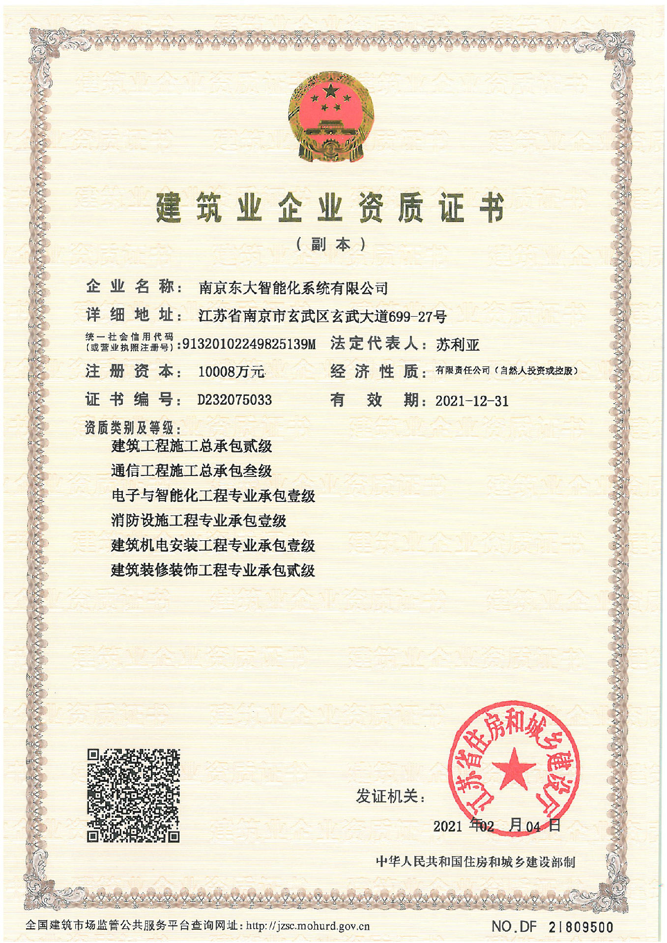建筑业企业资质证书